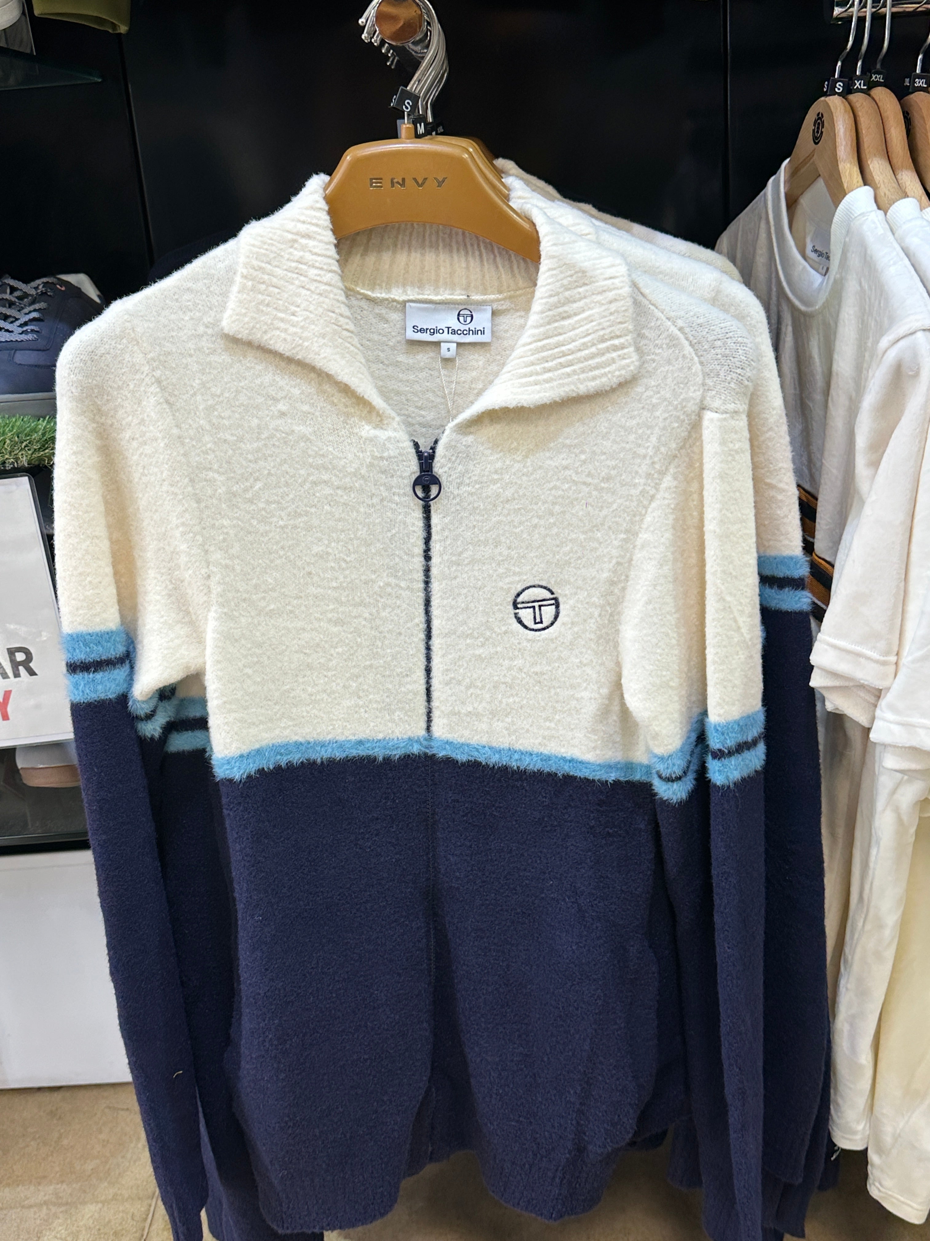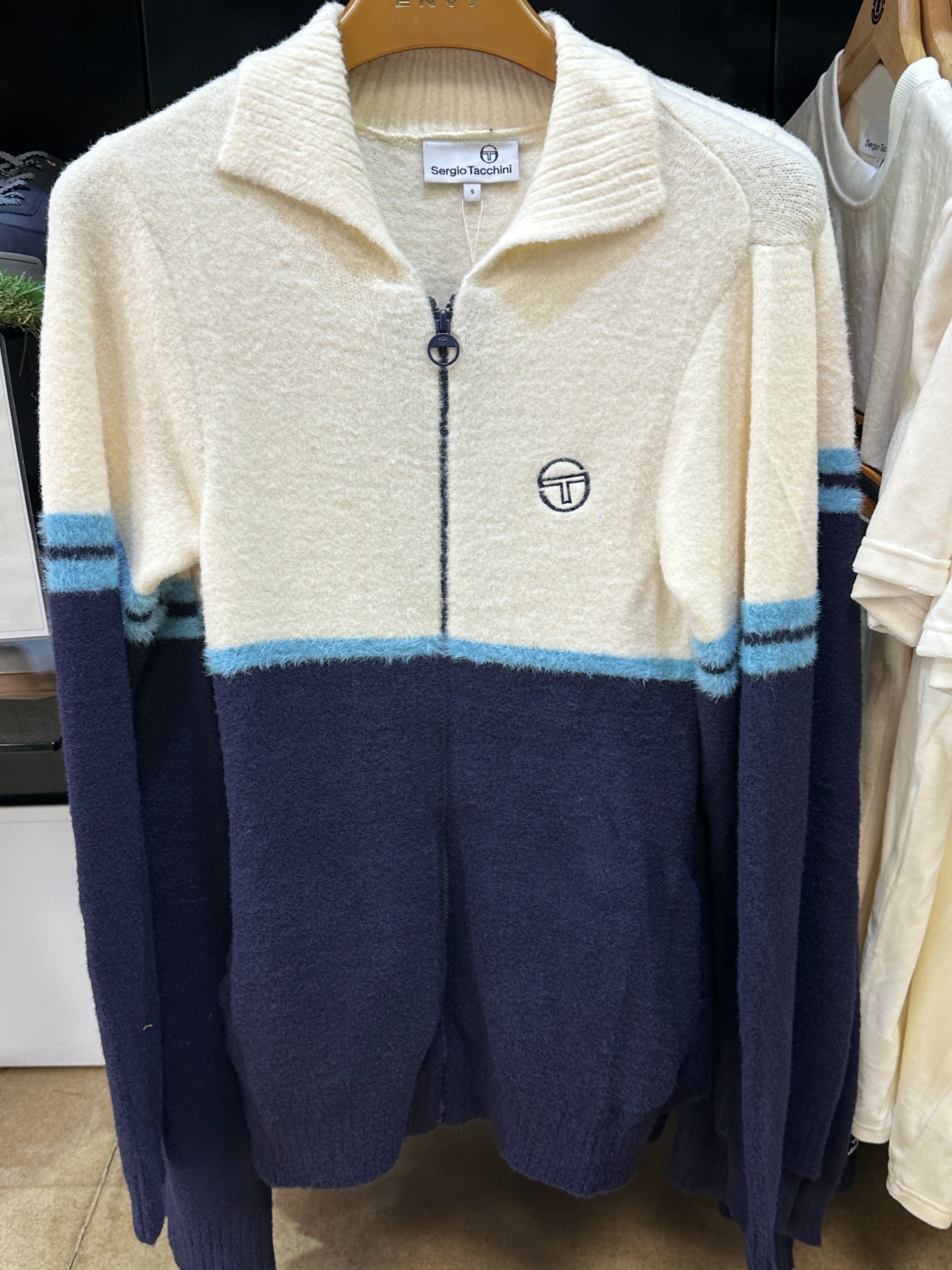 Sergio Tacchini Orion Brushed Knit Track Top Gardenia/Milky Blue The Sergio Tacchini ‘Orion’ Brushed Knit Track Top in Gardenia, Milky...