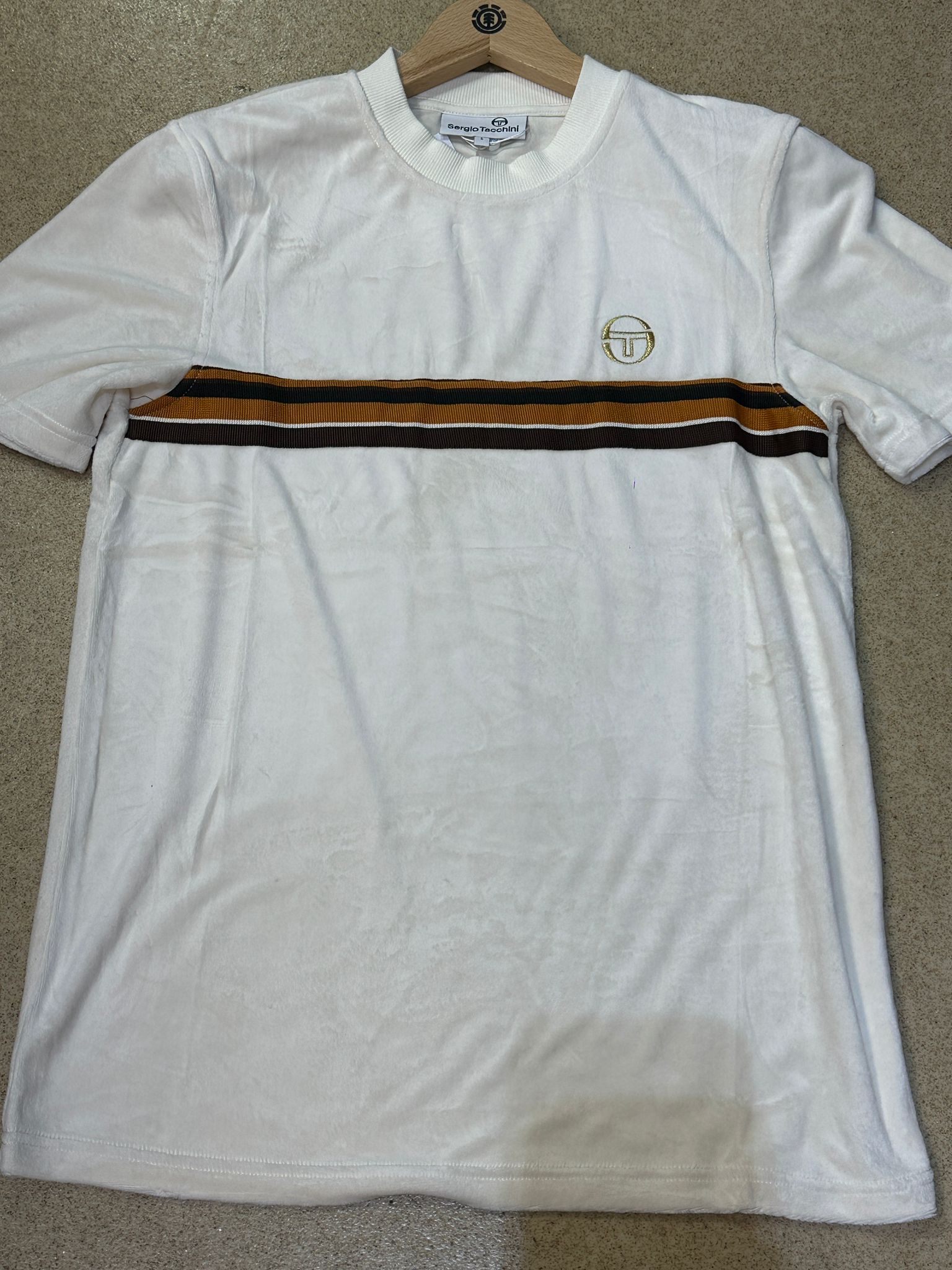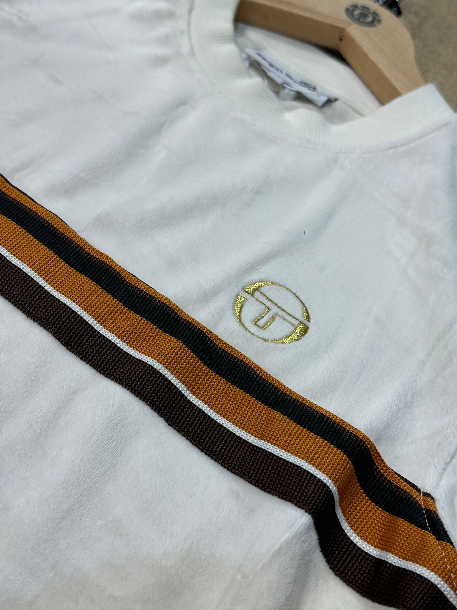 Sergio Tacchini Ayme Velour Tee Gardenia/Gold The Sergio Tacchini Ayme Velour T-shirt is a premium crew neck tee, crafted in a...