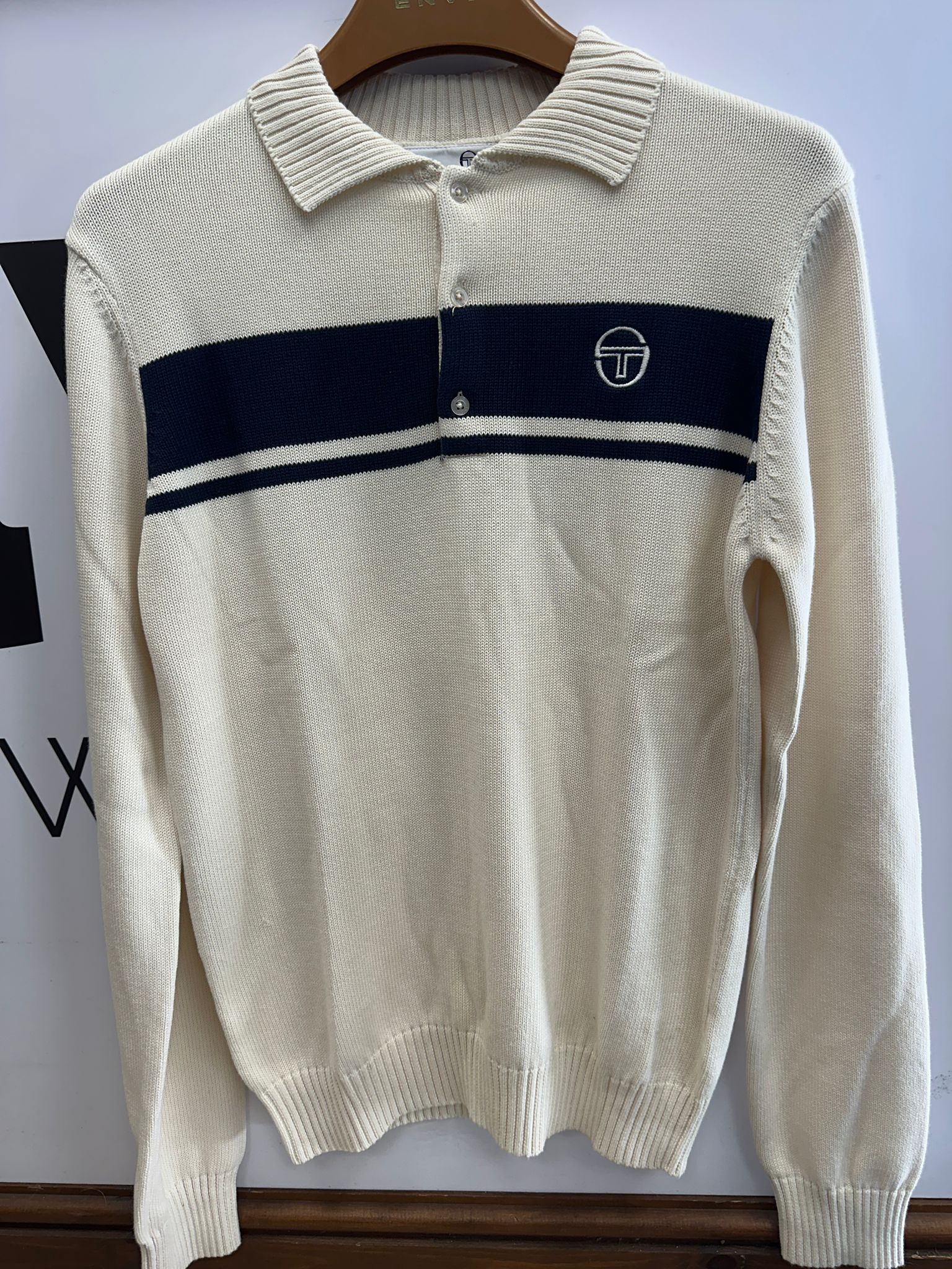 Sergio Tacchini Damarindo L/S Knit Polo Gardenia/Maritime Blue - 588
