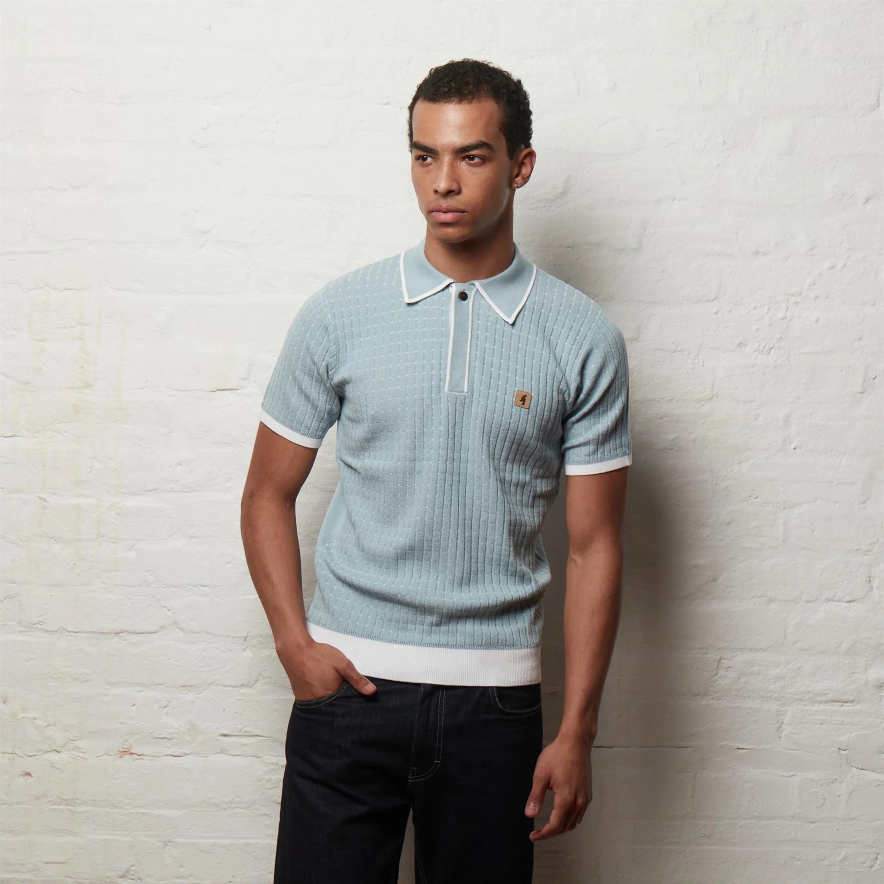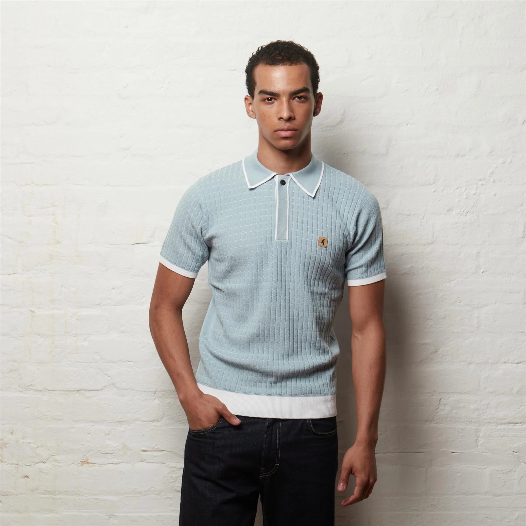 A stylish knit polo with subtle texture and classic retro detailing, the Osbourne Polo delivers a clean, refined look. Featuring a vertical textured knit pattern with contrast trim on the collar, placket and cuffs, it’s finished with the signature Gabicci badge for an authentic vintage touch.