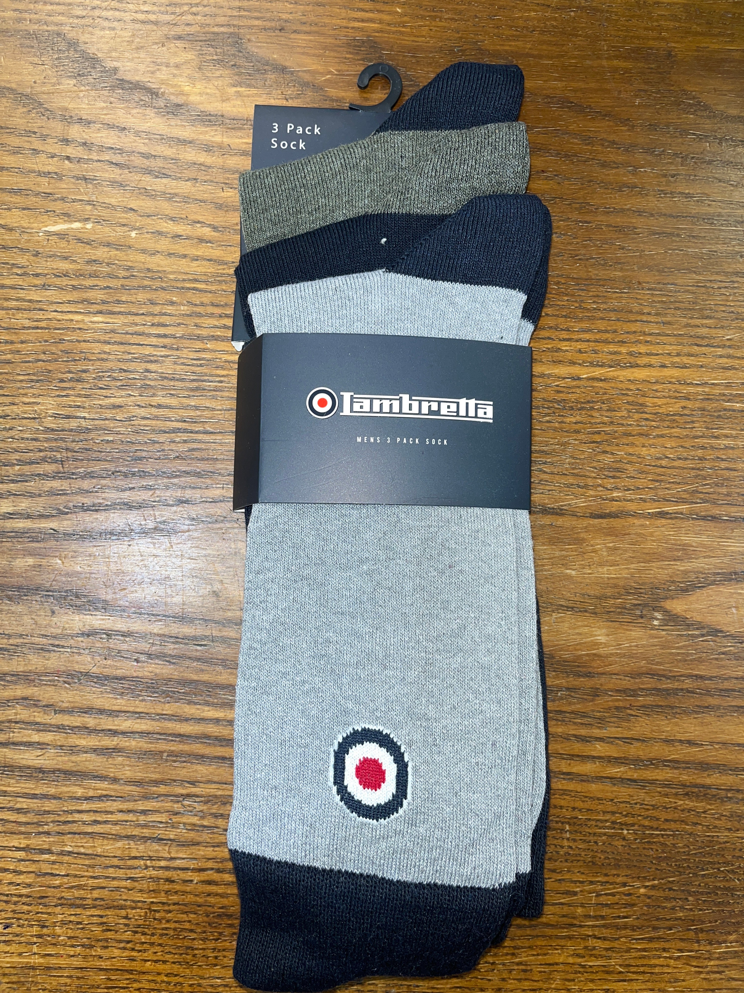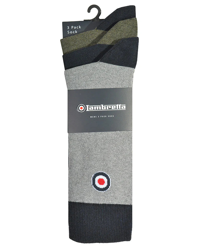 Lambretta 3 Pack Paisley Target Socks Grey/Navy/Khaki - 1458