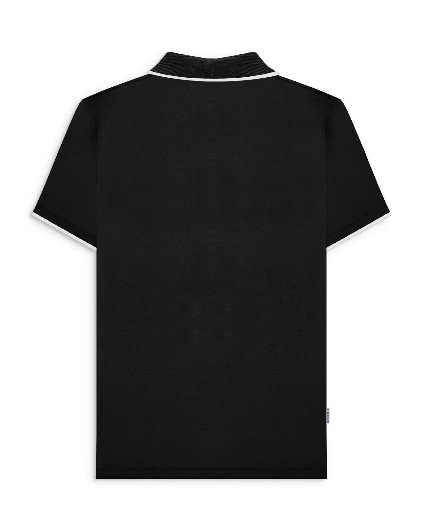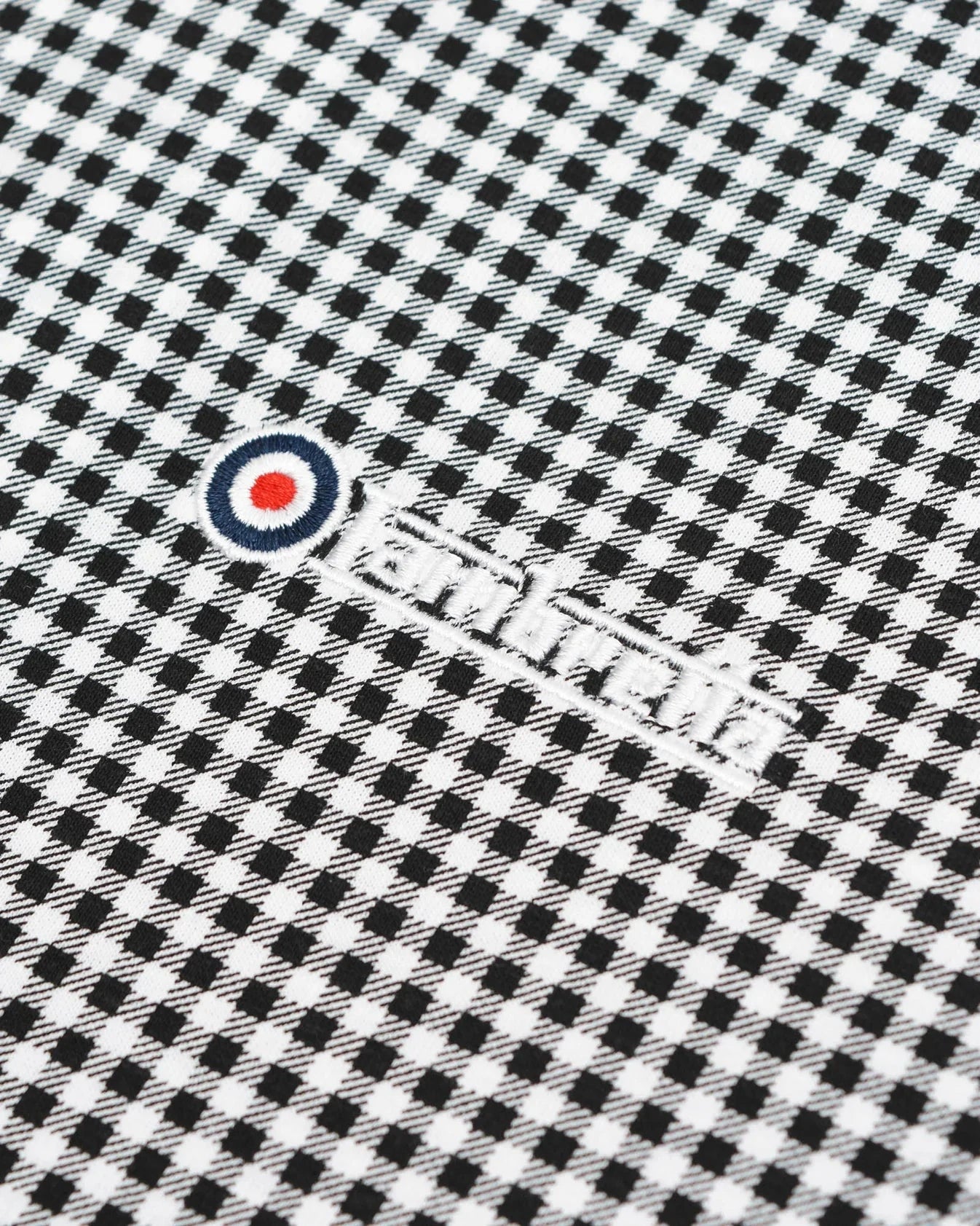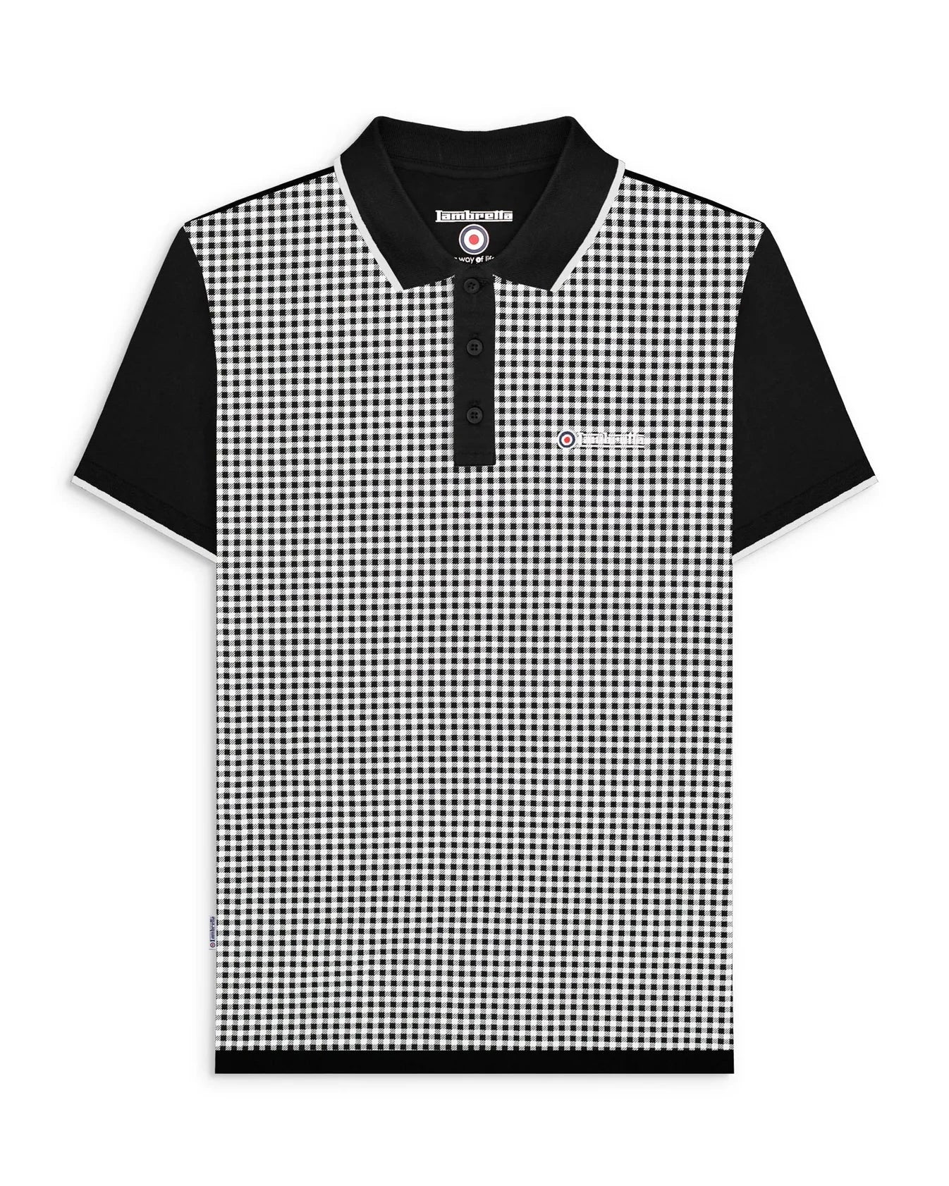 Lambretta Gingham AOP Polo Black -Gingham print front-Single tipped collar and sleeves-Block logo chest embroidery-3 button placket-Woven Lambretta label to...