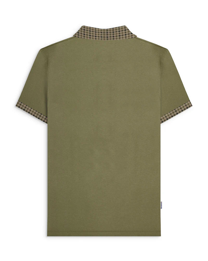 Lambretta Gingham Collar Polo Khaki This casual dress polo features a classic gingham check on the collar and cuffs for...