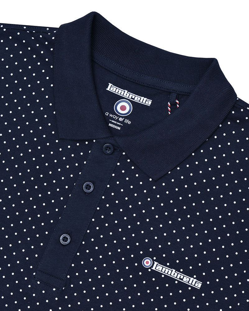 Lambretta Polkadot Polo Navy A great smart polo for a more formal occasion or an evening out, decorated with an...