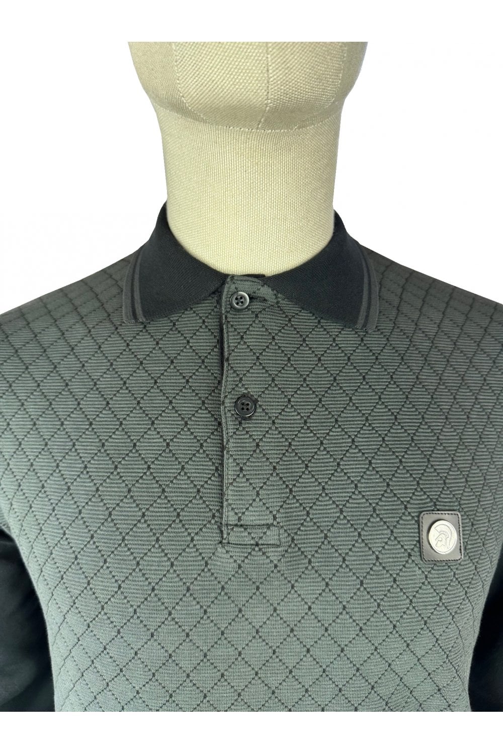 TROJAN Ottoman Rib Panel Polo L/S TR/9026 Black Heavy cotton interlock polo Ottoman rib geometric jacquard front panel Two button...